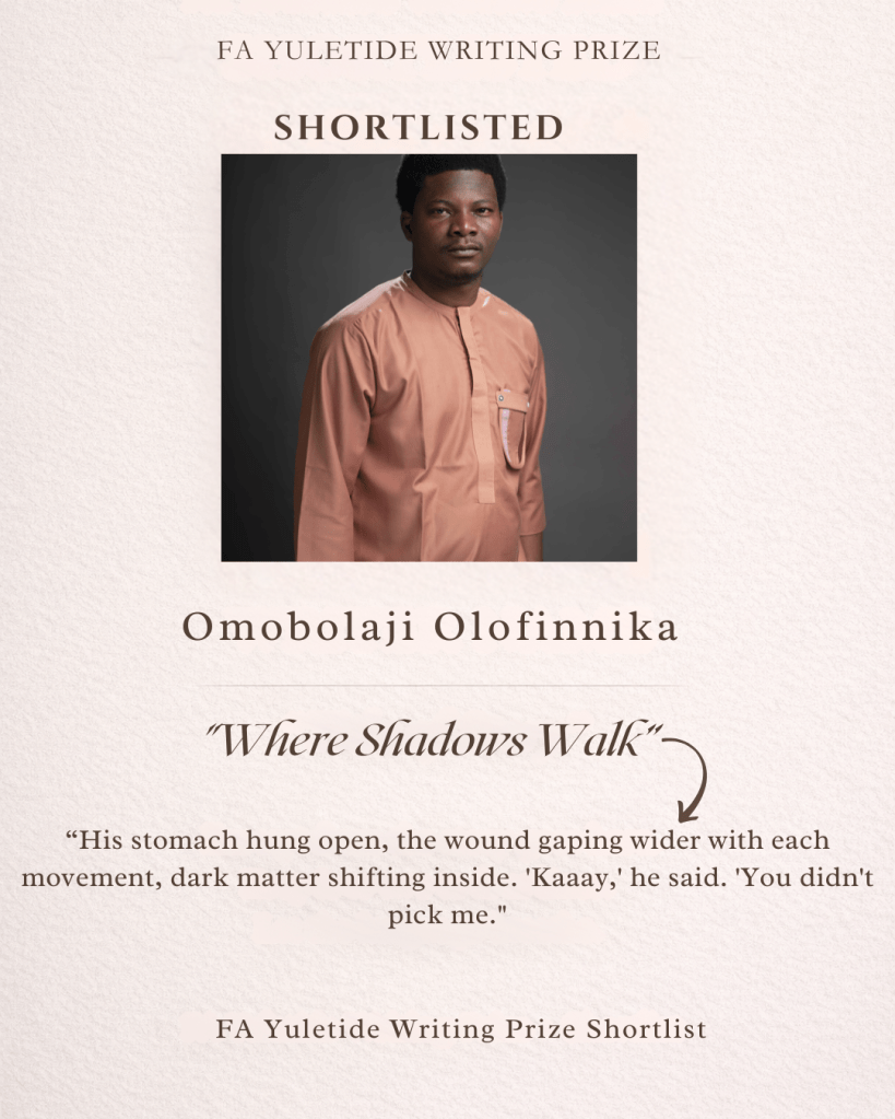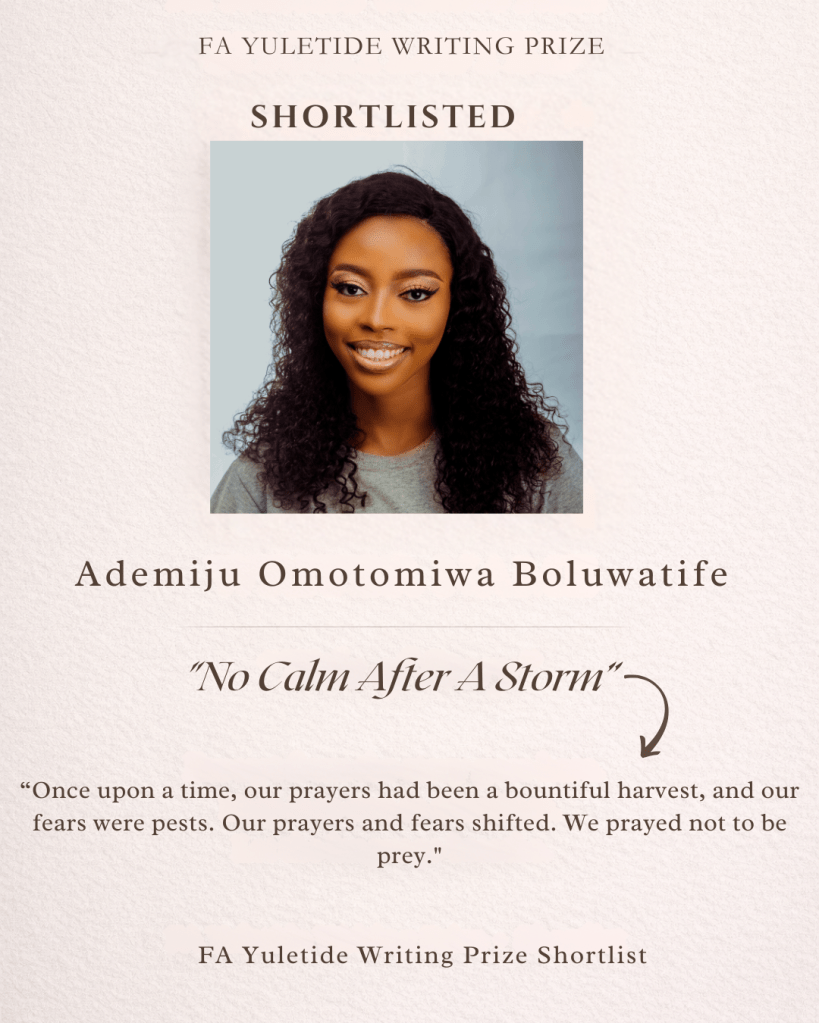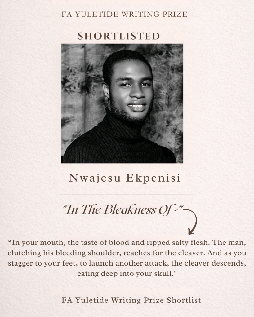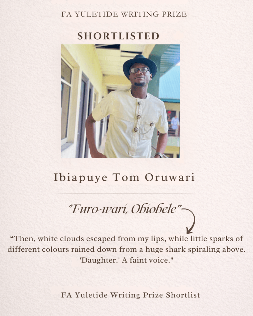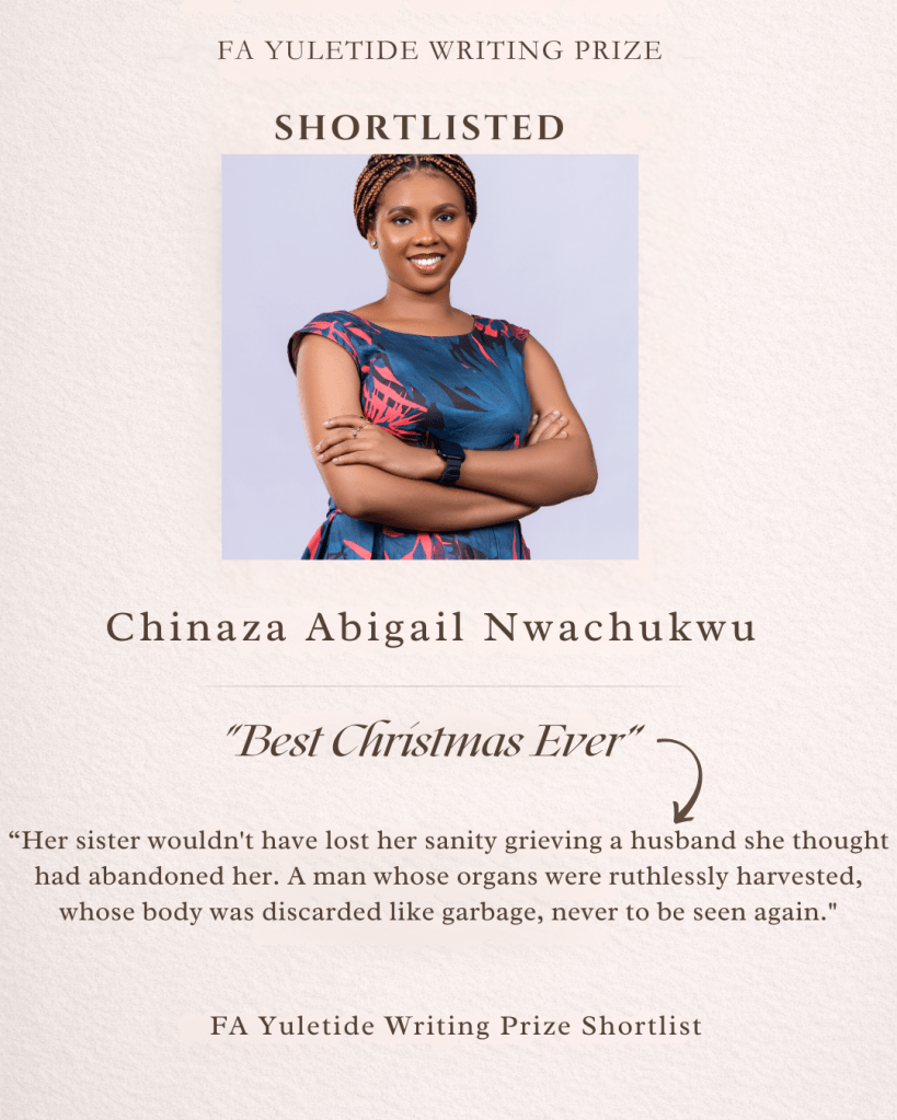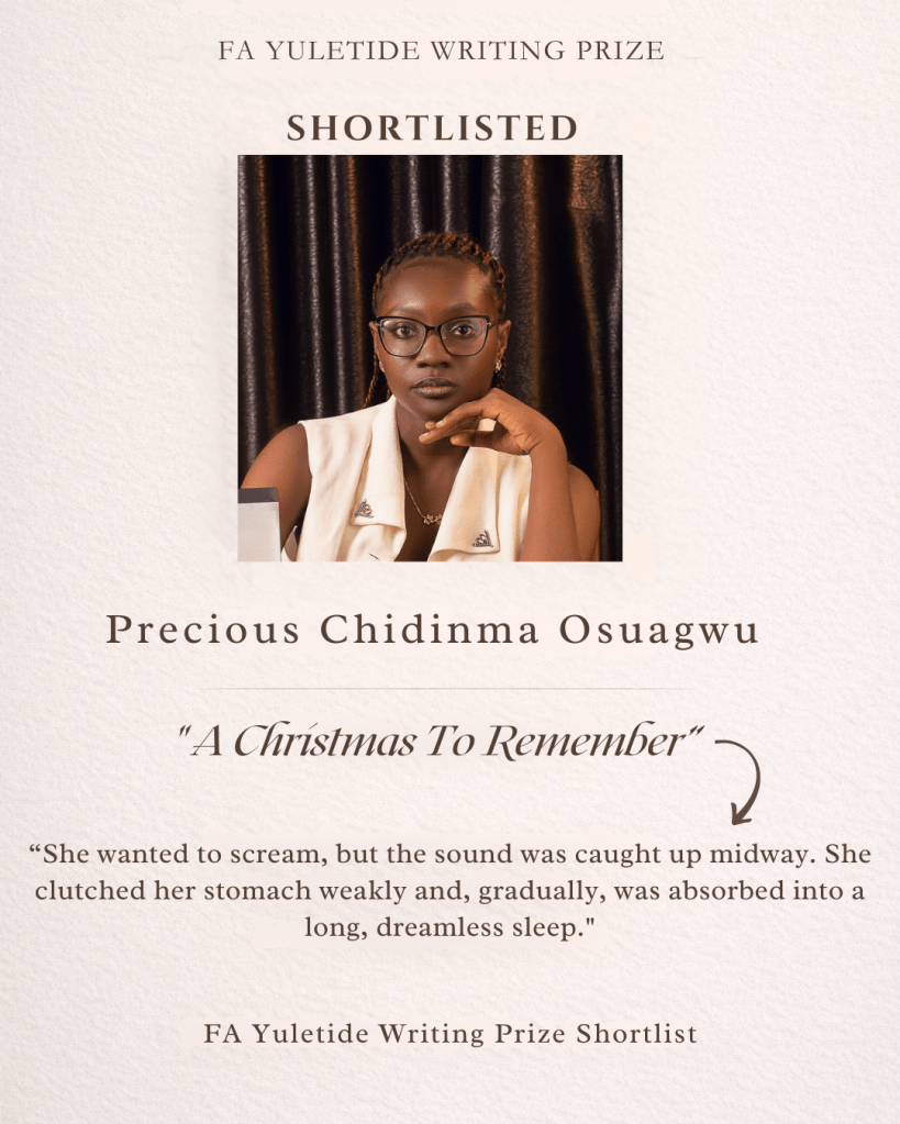 The FA Yuletide Writing Prize is an annual creative writing contest that celebrates bold and profound stories by Nigerian writers. This opening edition explores the theme Dark Yuletide. We welcome stories that resonate with the lived realities of Nigerians.